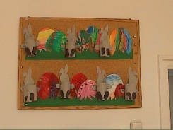 Április 8.-án vártuk a nyuszi érkezését az idén. Ajándékként bábelőadást szerveztünk a gyermekek részére, mellyel emlékezetessé tettük ezt a hagyományápoló jeles napot. A bábelőadás után az ovikertben a bokrok alól a gyermekek nagy izgalommal keresték meg a kis ajándékokat, amit hazavihettek Húsvét alkalmából.