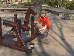 A fa játszószereket újrafestették, hogy megóvjuk állagukat, és sokáig játszhassanak rajta a gyermekek.