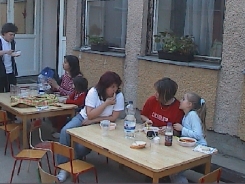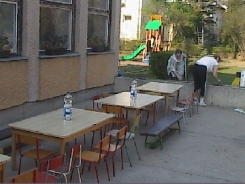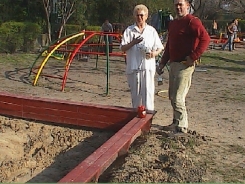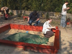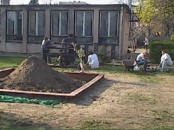 A Zöld alma, a Kék delfin és a Sárga napraforgó csoportnak fa keretes homokozója lesz a régi, balesetveszélyes, kőperemű homokozó helyett. Ezeknek a kőtömböknek a kivésése erőt próbáló volt, de sikerrel jártak a szorgos szülők.