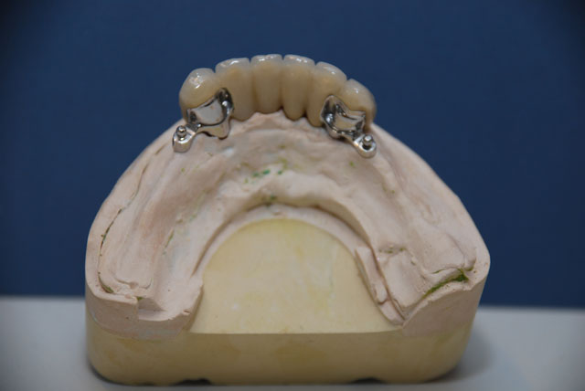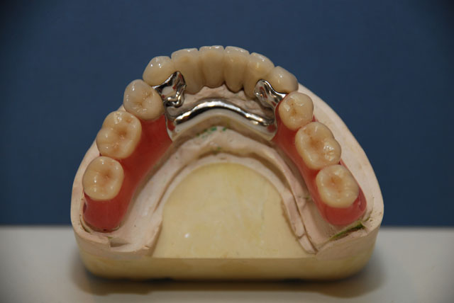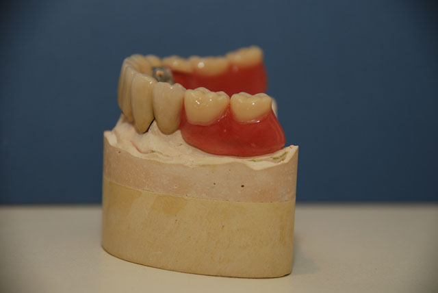 Ausnehmbarer Zahnersatz - Prothese - wenn die vorhandenen Zähne nicht ausreichen und kein Implantat eingesetzt werden kann, dann ist eine sich auf das Zahnfleisch stützende Prothese anzufertigen. Diese kann an den vorhandenen Zähnen, oder mit Hilfe von Haftelementen angebracht werden. Der Vorteil der Befestigungselemente ist, das bei guter Planung nur physiologische Belastungen auf die Zähne gerichtet sind und ästhetisch sind diese Elemente nicht sichtbar.