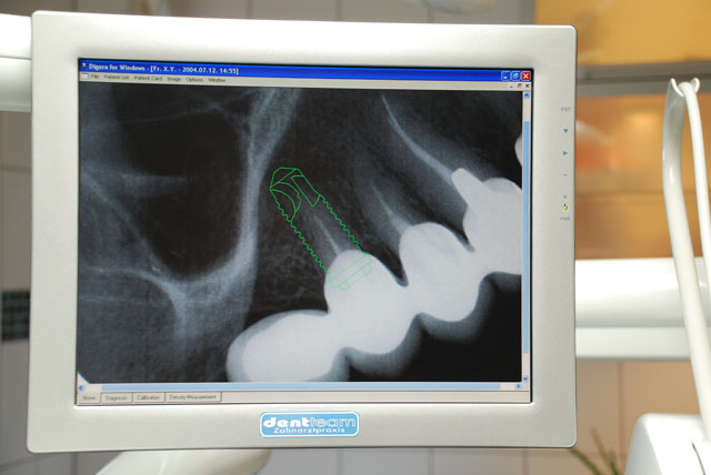 Röntgengerät mit Digitalen Bildern - die Röntgenbestrahlung kann lebendige Gewebe angreifen, ist jedoch unser wichtigstes diagnostisches Mittel. Die Wahrscheinlichkeit einer Beschädigung ist proportional zu der Dosierung der Bestrahlung. Die herkömmlichen Röntgengeräte setzen einen chemischen Vorgang auf dem Film in Bewegung, ähnlich zur Fotografie. Filme mit höherer Empfindlichkeit sind geringfügiger detailreich.